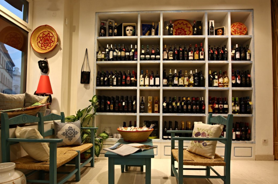 Prodejna je jako exkluzivní vitrína s jasně daným tématem: Italské delikatesy. Čtyři stolečky slouží k poklidnému posezení v originálním prostředí a k vychutnání si sklenky vína s možností degustačního talířku sýrů a uzenin. Dobrou kávu je možné doplnit ochutnávkou italského moučniku.