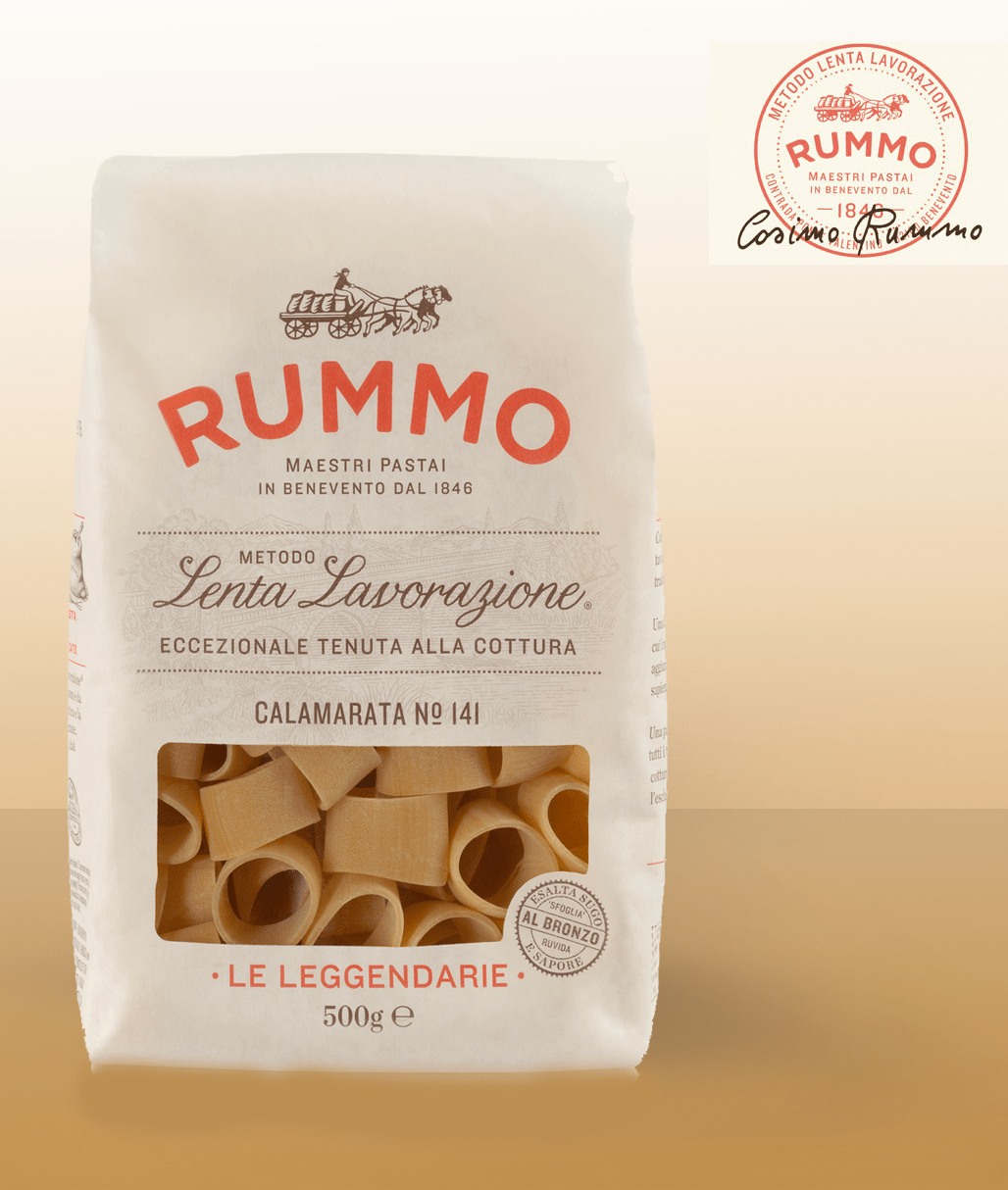 Hledání nejlepších surovin, fáze pomalého míchání, použití speciálních bronzových matric díky drsnosti, která dokáže zachovat jakýkoli druh omáčky, a mistrovské přirozené sušení pro zachování vůně pšenice činí z těstovin Rummo vysoce kvalitní produkt.