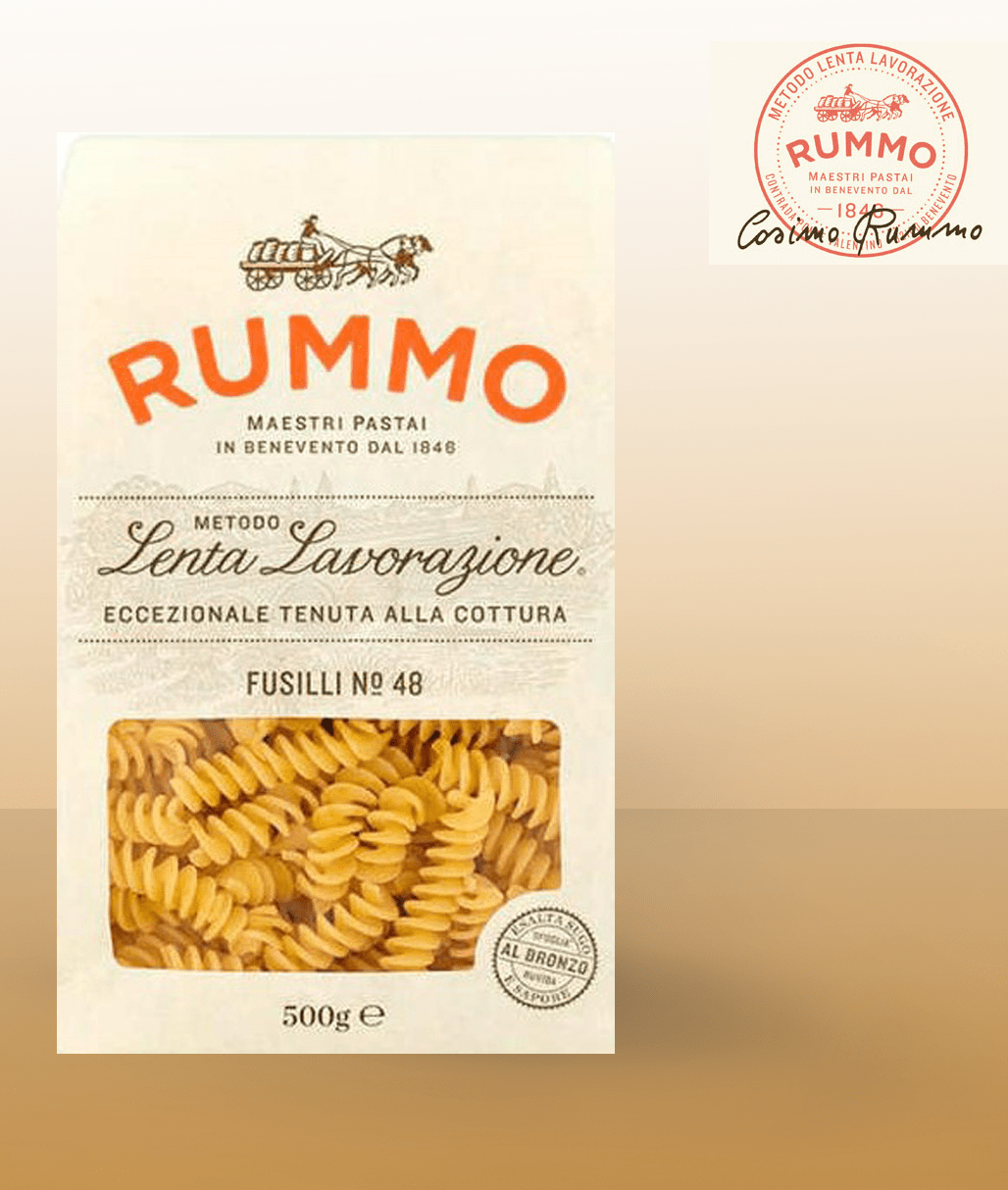 Hledání nejlepších surovin, fáze pomalého míchání, použití speciálních bronzových matric díky drsnosti, která dokáže zachovat jakýkoli druh omáčky, a mistrovské přirozené sušení pro zachování vůně pšenice činí z těstovin Rummo vysoce kvalitní produkt.